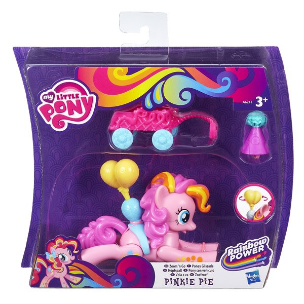 Retrocede y adelante! Que travieso es tu Pony de retrofricción. Juega con él y diviértete. Hay 2 modelos diferentes a coleccionar: Rainbow Dash y Pinkie.