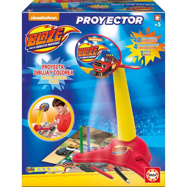 Proyector Blaze. Proyecta, dibuja y colorea! Reproduce a tus héroes en plena acción. Por su contenido (escenarios, personajes) permite crear distintos cómics en base a guiones diseñados por el propio niño. Funciona con leds. Incluye un proyector, 40 diapositivas, 6 ceras de colores, un lápiz e instrucciones. Edad recomendada: +5 años.