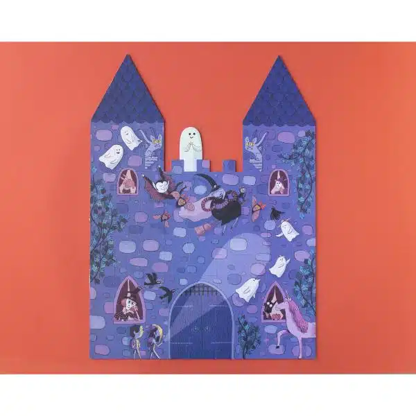¡Uhhhh! ¿Quién se atreverá a entrar en el castillo encantado? Monta el puzle, apaga las luces y… ¡sorpresa! ¡Los fantasmas brillan en la oscuridad!