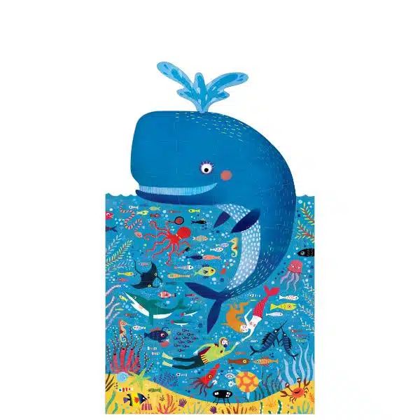Un puzle de 36 piezas protagonizado por una ballena, con ella vamos a explorar las profundidades marinas. Un juguete sostenible y de proximidad.