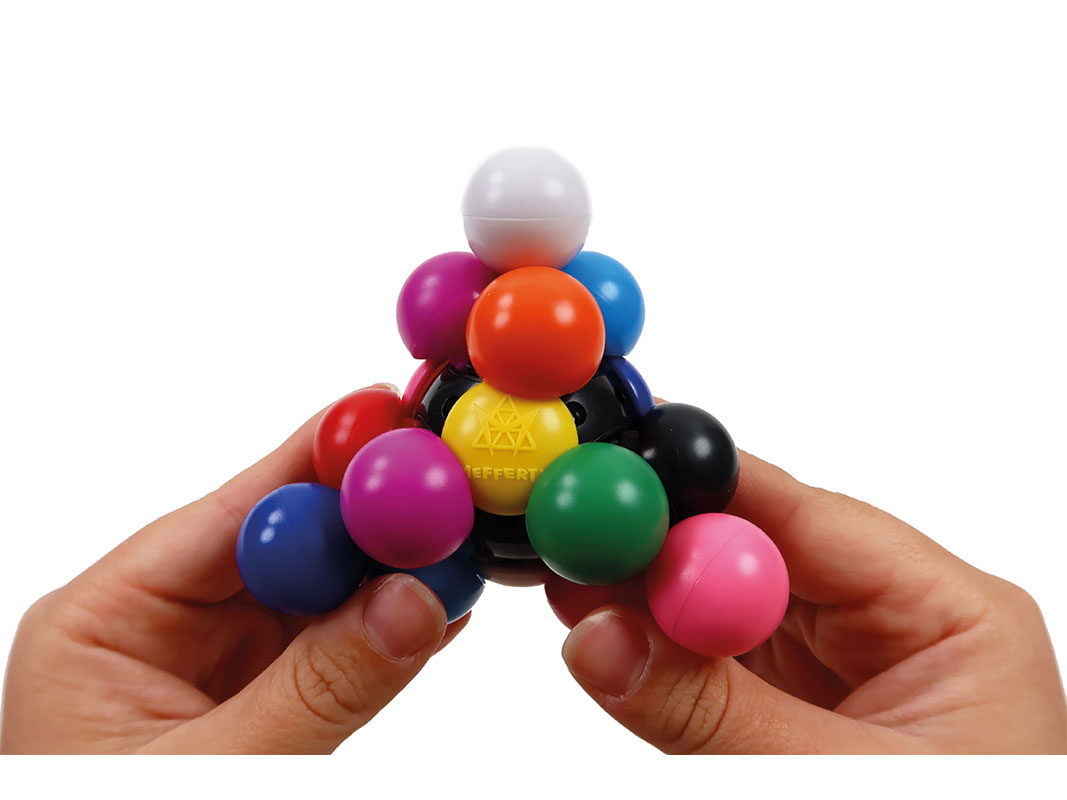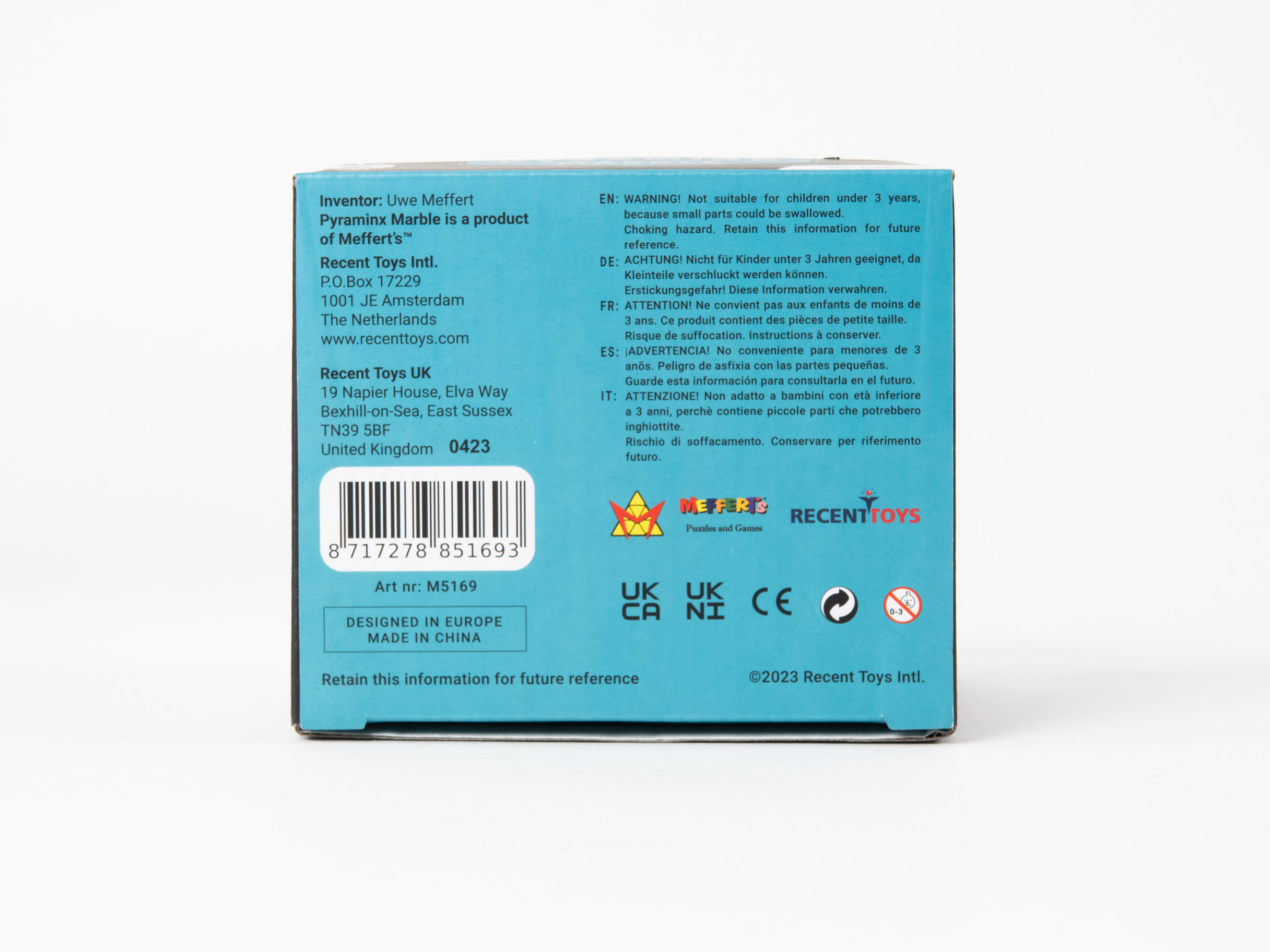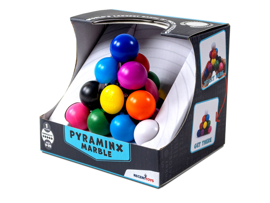 Olvídate de los bloques, ¡las canicas son la forma de construir una pirámide! El sofisticado mecanismo de giro y clic de Pyraminx Marble hace que sea un placer jugar con él mientras intentas conseguir 10 colores diferentes en cada uno de los cuatro lados.