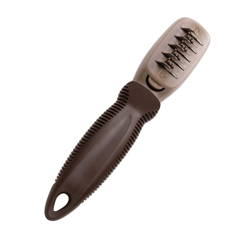Uno de los problemas habituales a la hora de peinar pueden ser los nudos y los enredones de pelo. Si te encuentras con un nudo cerrado, puede dificultarte el peinado y hacer daño a tu perro o gato. Con este rompenudos Gloria, gracias a sus cuchillas combinadas, consigues abrir los nudos fácilmente.