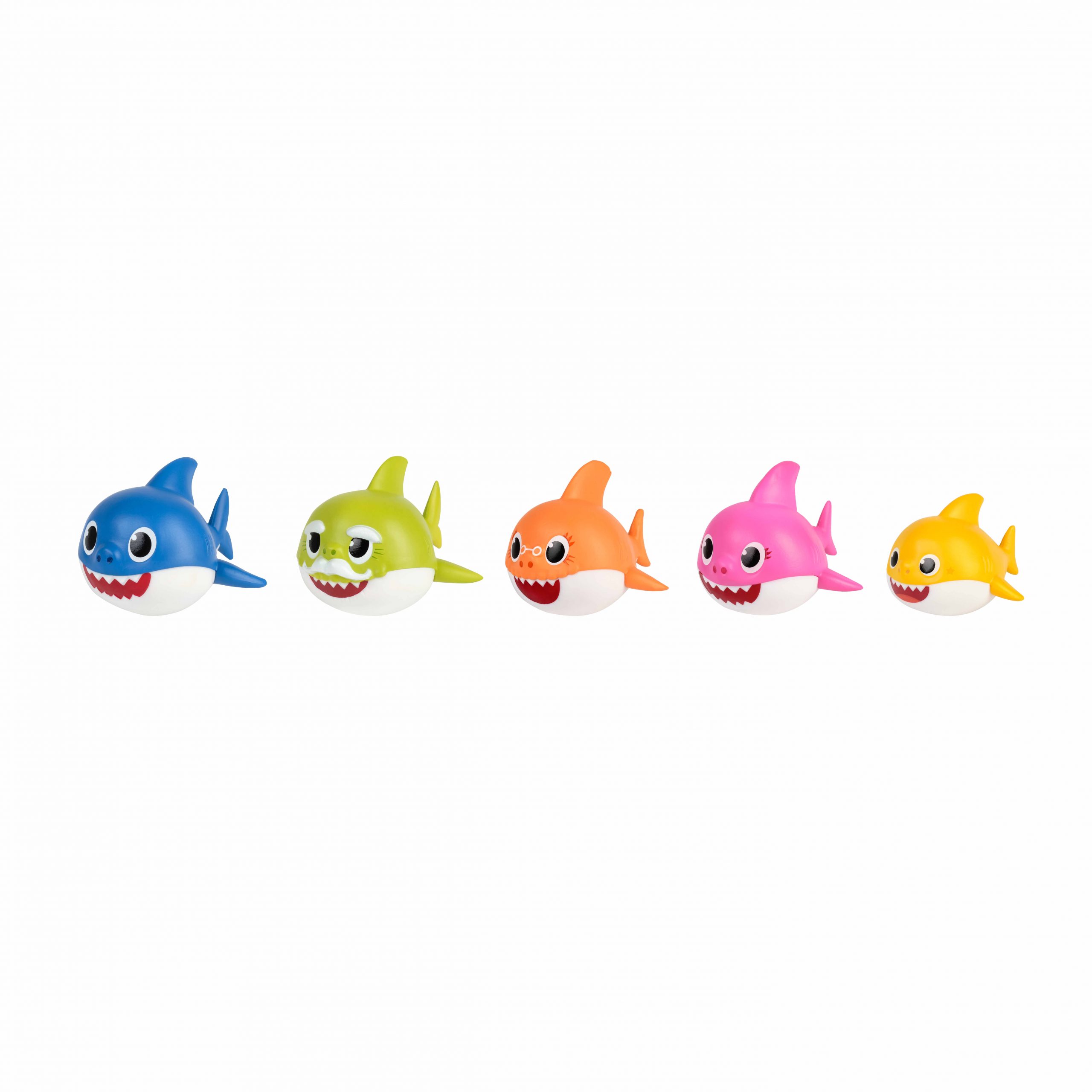 Puedes descubrir el Set de Baby Shark con figuras como Baby Shark, Mommy Shark, Daddy Shark, Grandma Shark y Grandpa Shark.
