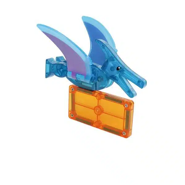 Cuatro figuras magnéticas de dinosaurios, que incluyen: Pteranodón, T-Rex, Stegosaurio y Velociraptor