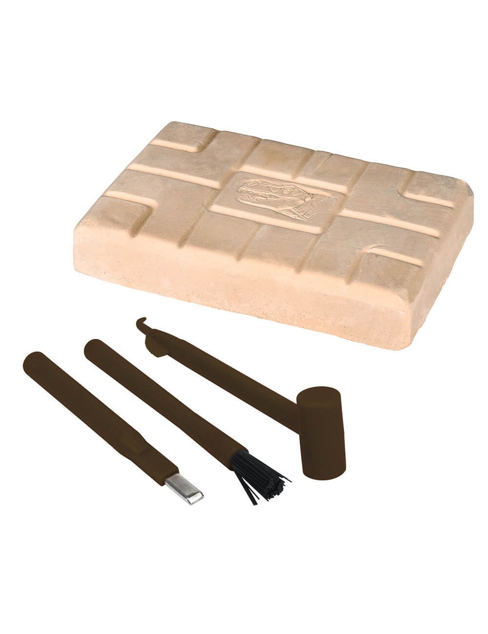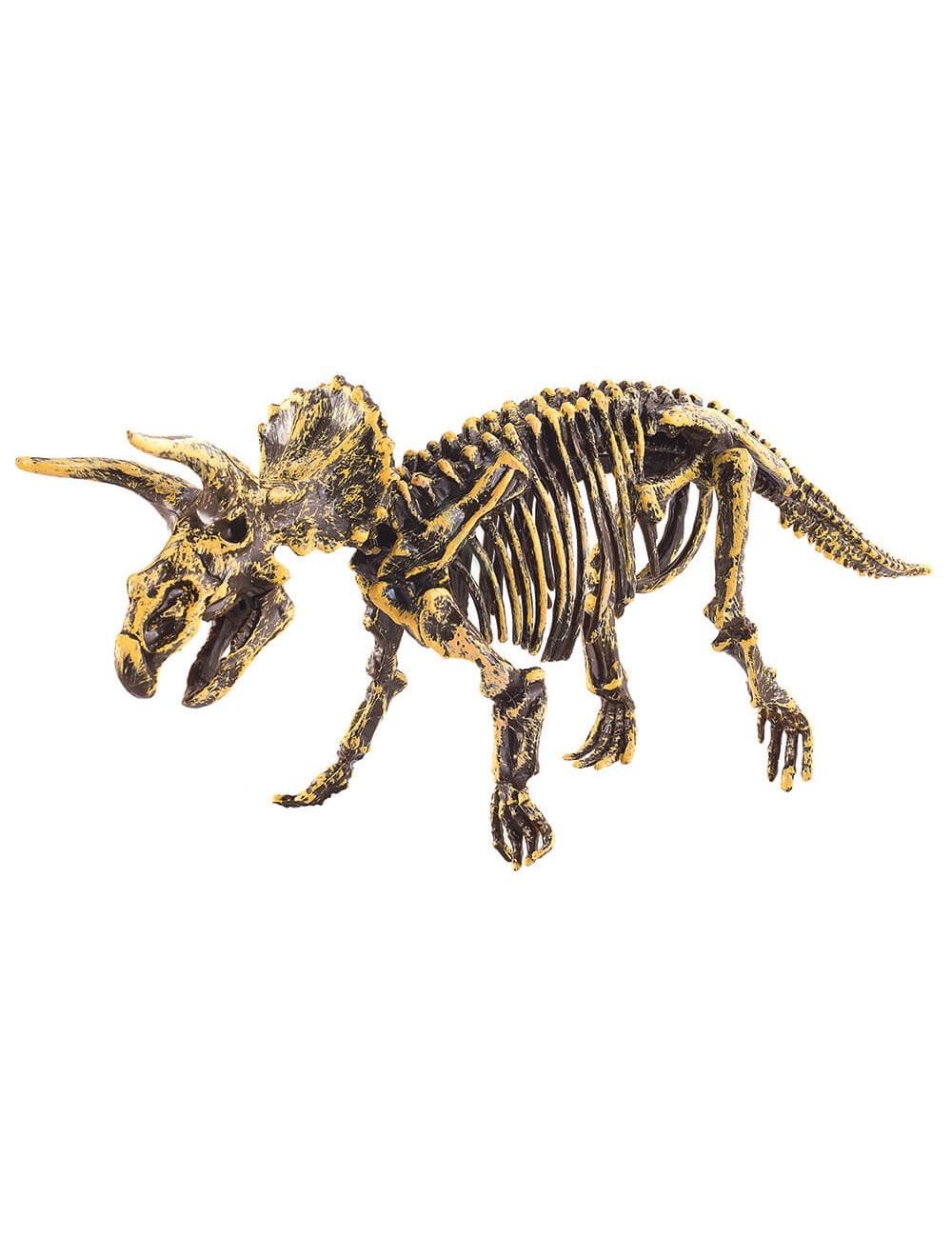 Pica, excava y limpia, con mucho cuidado, hasta desenterrar el esqueleto del famoso Triceratops. El set excavación incluye una figura del dinosaurio y un montón de información super interesante.