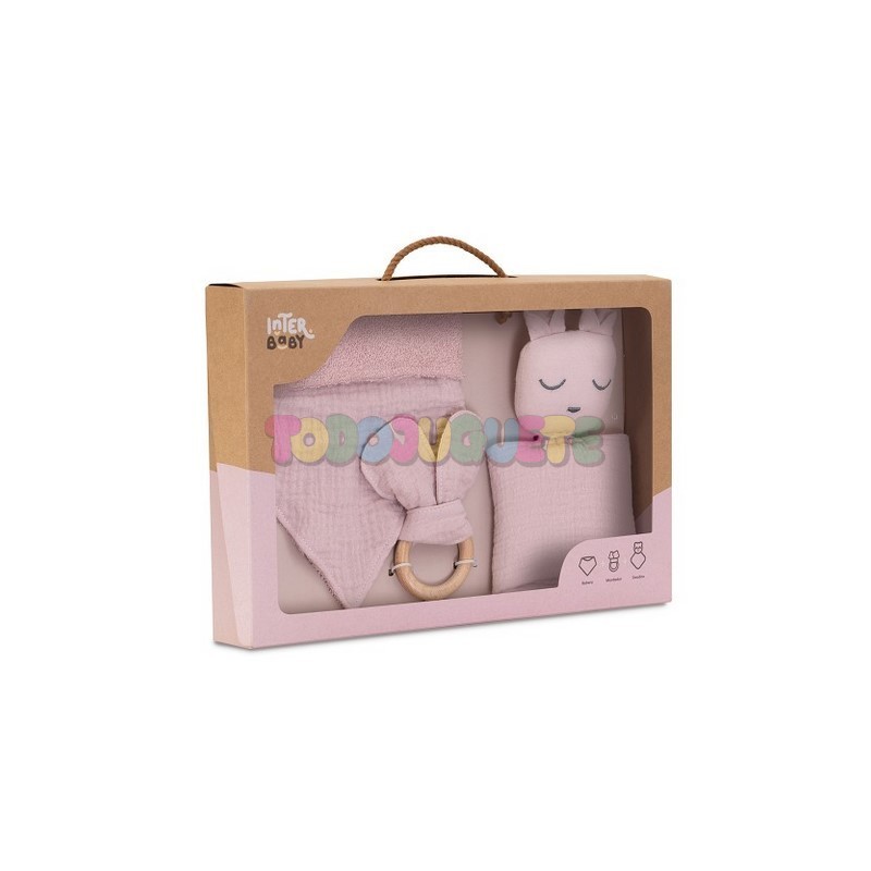 Set de regalo compuesto por dou dou, bandana y anillo mordedor en madera y bambú.