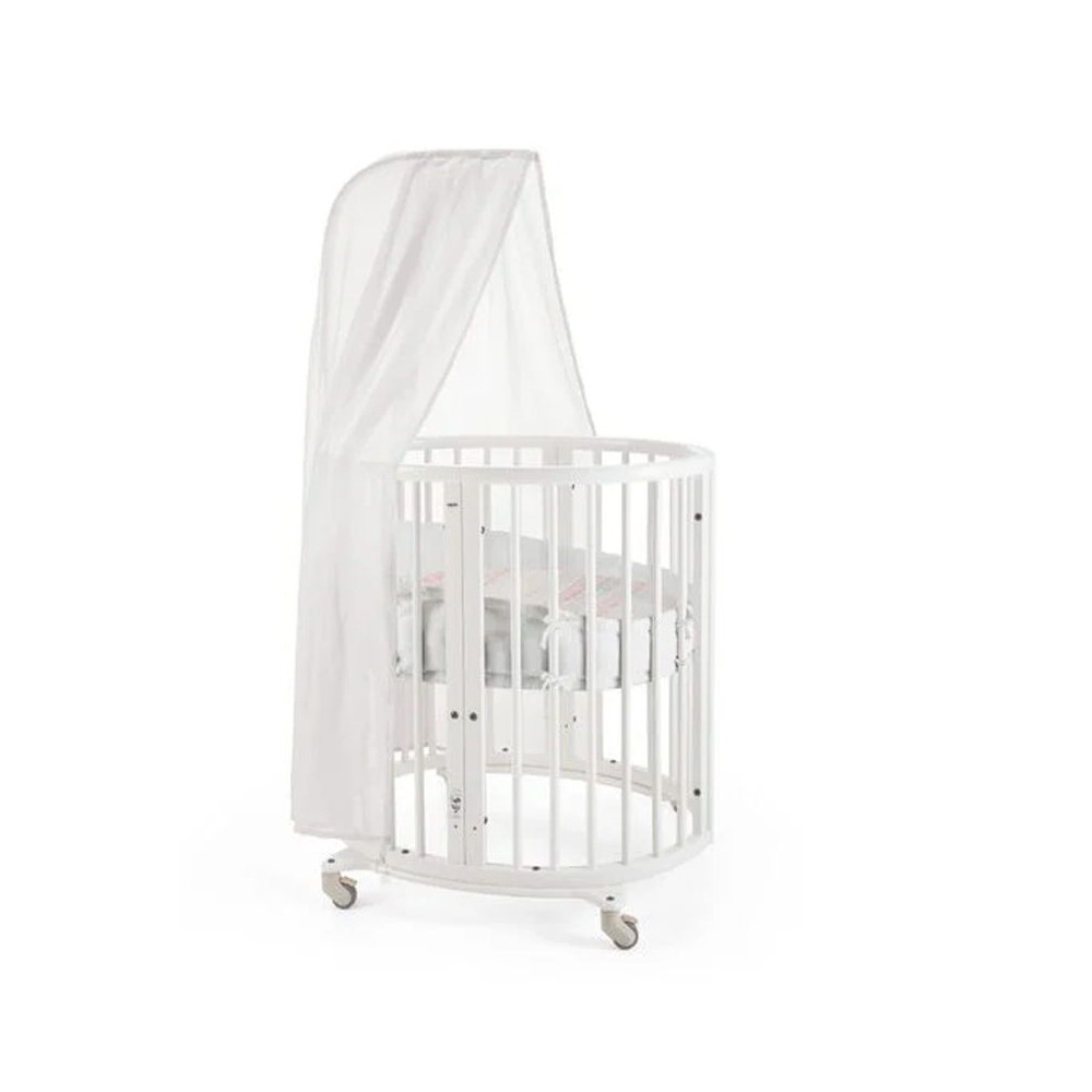 - Se coloca fácilmente en el mástil de dosel y se sujeta con cintas a la parte inferior de la cuna