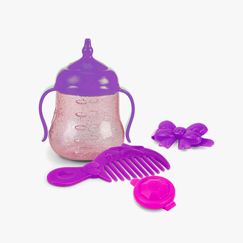 Incluye: 1 muñeca, 1 máscara, 1 botella de leche, 1 cepillo, 1 peine, 1 molde de tortuga y otro de caballito de mar para la arena de la playa, 40 gr de arena estática, 1 pulsera de misión y 1 folleto de misión.