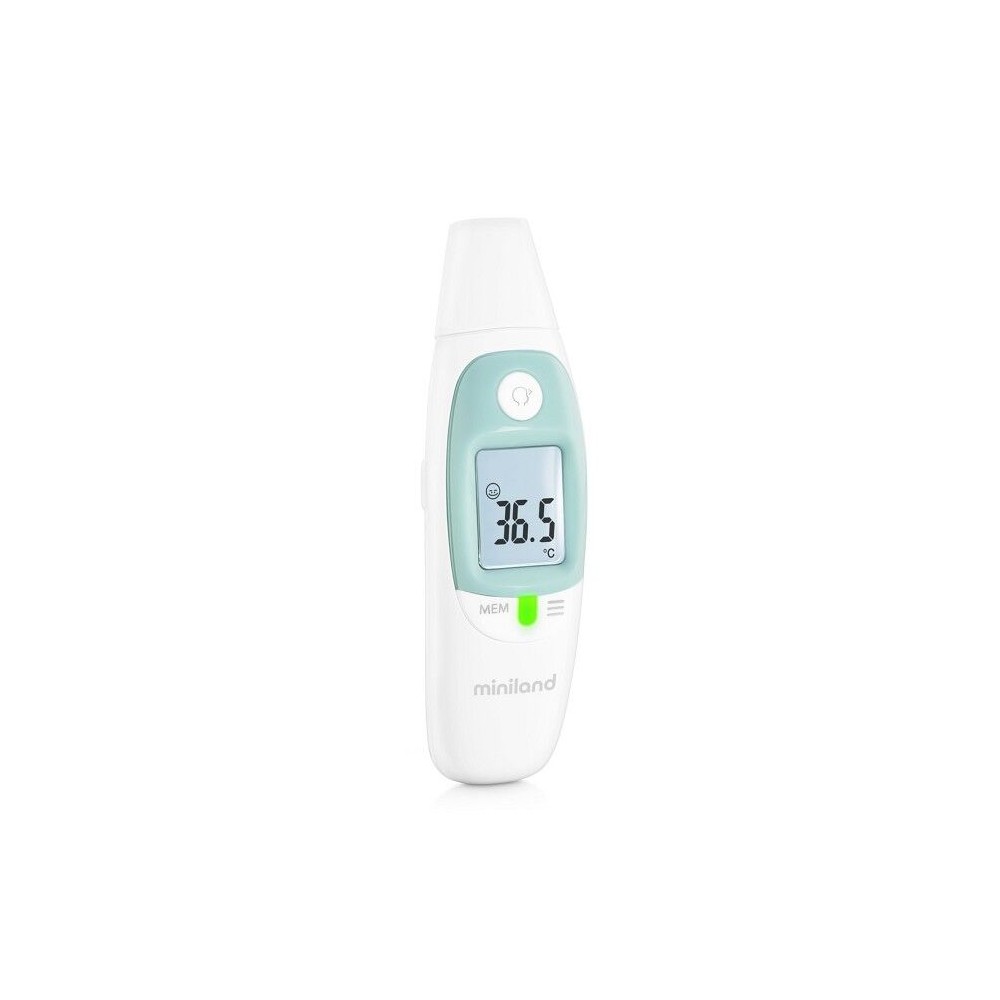 El termómetro Thermosense de Miniland con un diseño cómodo y ergonómico para medir la temperatura de tu bebé mediante infrarrojos en frente y oído.