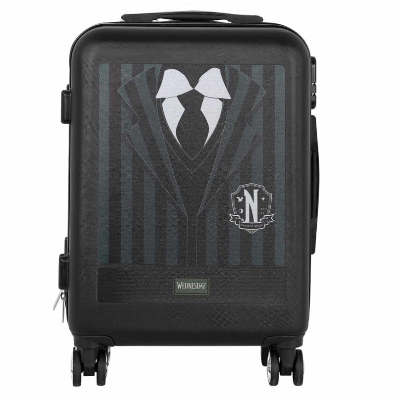 Este trolley Miércoles no es solo una maleta, es un regalo genial y original, perfecto para amantes de la moda y auténticos fans de la serie. Además, cuenta con licencia oficial de Netflix, lo que lo convierte en un artículo imprescindible para los seguidores de esta entretenida historia sobre Merlina Addams. Viaja con elegancia y personalidad, y lleva contigo un pedacito de la magia de Miércoles donde quiera que vayas. ¡Haz que tus viajes sean inolvidables con esta maleta única!