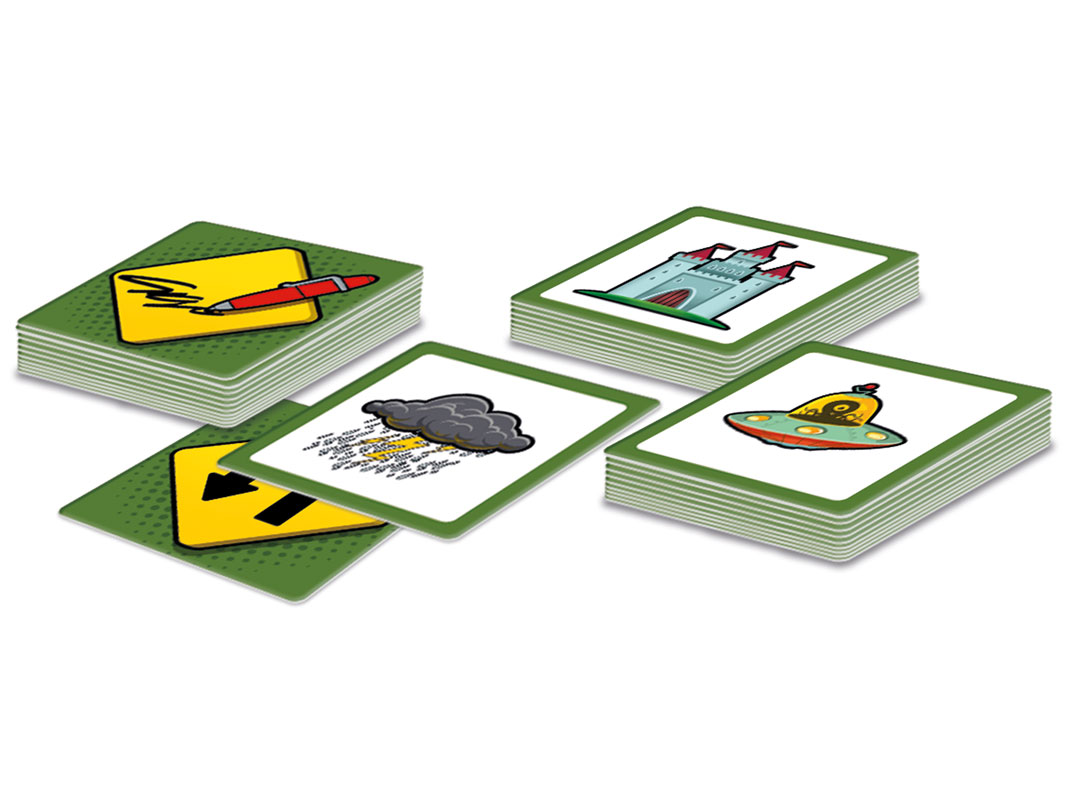 Crea divertidas historias con palabras o gestos y conviértete tú mismo en su protagonista. What´s up? Jr. Es un trepidante juego en el que tendréis que crear y contar entre todos los jugadores una disparatada historia usando los divertidos elementos que muestran las cartas del juego (castillo, coche, …). Durante la partida, las distintas cartas de acción os obligarán a seguir la historia con mímica, retar a los compañeros e incluso introduciros a vosotros mismos dentro de la historia.