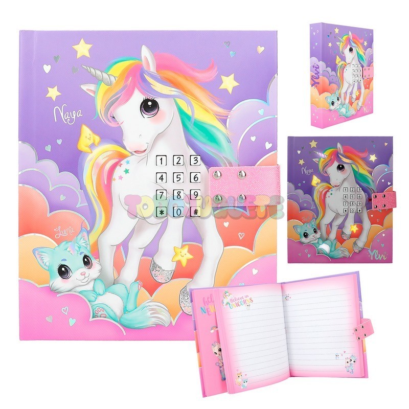 Un lugar seguro para pensamientos mágicos. El diario de unicornio de Ylvi and the Minimoomis solo se puede abrir si se introduce correctamente el se desee). Al activar la apertura suena una melodía mágica y en la portada se iluminan lucecitas. Tiene 192 páginas rayadas e ilustraciones monísimas.