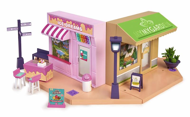 Playset de 2 tiendas para la ciudad de Mymy City, una heladería y una floristería.